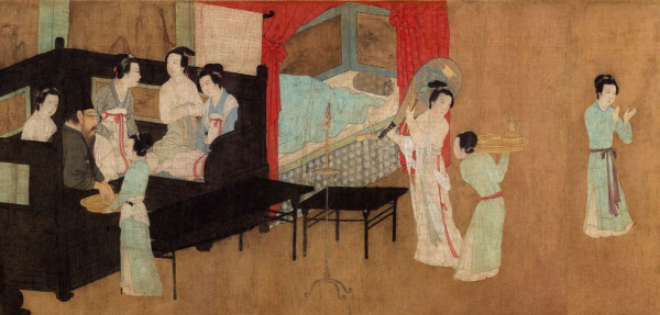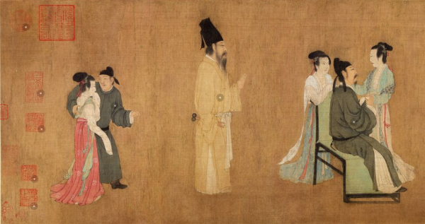 南唐顾闳中《韩熙载夜宴图》以连环长卷的方式描摹刻划了韩熙载的复杂心境。该图在人物画技法和构图上都十分精妙,是我国古代人物画的杰作。