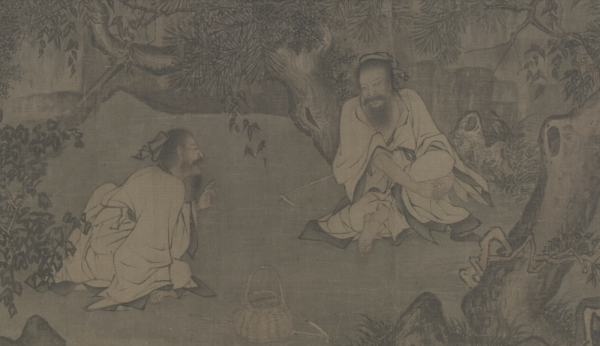 此卷画商末伯夷、叔齐不食周粟,在首阳山饿死的故事。图绘半山之腰,苍藤、古松之荫,伯夷与叔齐采摘薇蕨之余,正在休息对话的情景。画中正坐一人即为伯夷,他面带忧愤,目光炯炯,注视着叔齐。叔齐一手按地似在说着什么。图中人物刻画生动传神,衣纹简劲爽利,衬托出人物刚直不阿的性格。树石笔法粗简,墨色湿润。