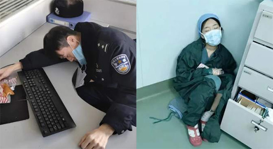 看到这张照片,我就想起手机里还存着一张爱人类似的照片,因为日夜连轴转,她蜷在角落里打个盹就睡着了,一个患者看到这一幕,拿起手机留下了这个瞬间。这张照片一直存在我手机里,我很心疼照片里的她。我们俩总用这个照片勉励对方,而这次战“疫”也让我们更加珍惜彼此,更加爱对方,更加珍惜现在所拥有的一切。