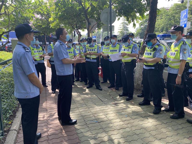 谢步强向安保警力讲解封闭工作方案。(南海公安供图)