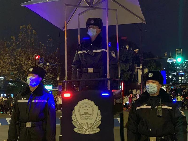2021年12月31日跨年夜,为有效应对广大市民群众和游客自发集中观光游览形成的“大客流”情况,黄浦警方全面落实各项安全保卫措施,加强公共场所人员聚集安全管理,确保辖区社会面治安总体情况平稳、有序。