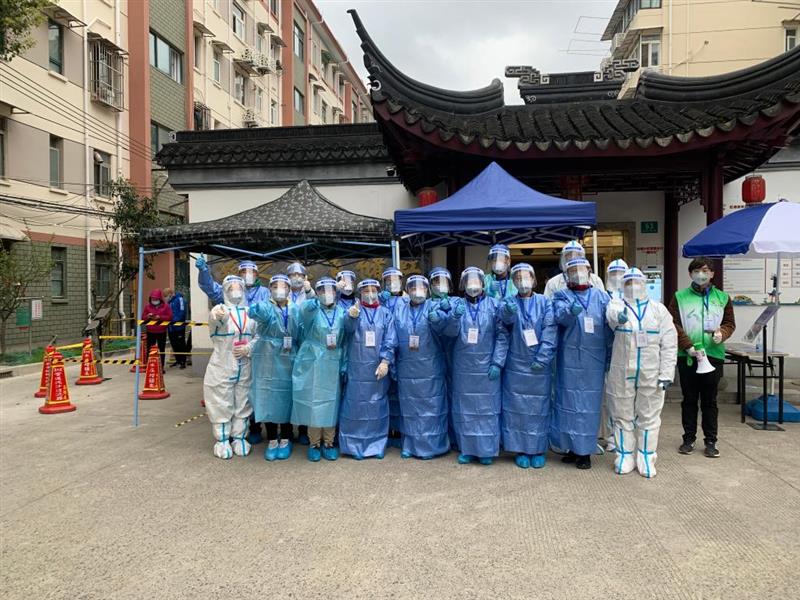 虹储居民区核酸检测采样点,党员干部、医务工作者以及来自各行各业的志愿者共同抗疫。受访单位供图