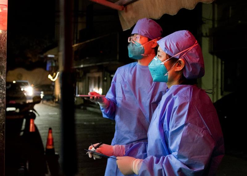 3月16日晚,流调人员在进行轨迹排查。新华社记者刘颖摄