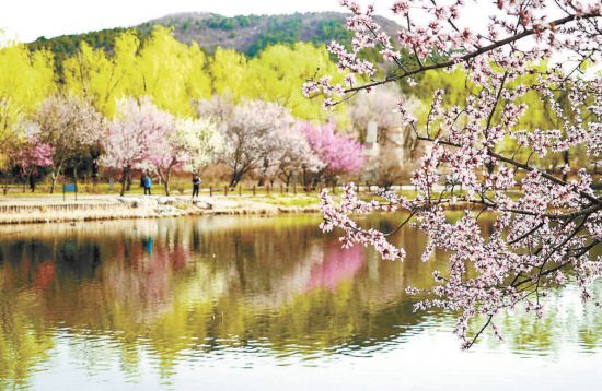 昨天上午,记者在国家植物园(北园)看到,静湖(南湖)周边,山桃、山杏、梅花以及迎春花、连翘等多种春花交相辉映,配上刚冒出新芽的绦柳,呈现出一派远山近水、桃红柳绿的春日佳景。在著名的山桃花溪,一泓春水伴随着盛放的山桃,美不胜收,浓浓的春意扑面而来。与此同时,位于科普馆西侧的山碧桃,以及梅园内红、粉、白等各色梅花也已进入观赏期。