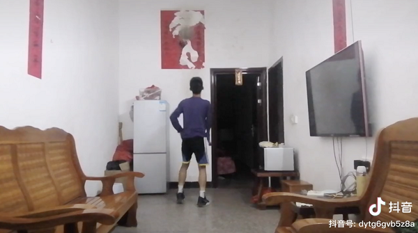 一只手自如地操控着篮球,另一只空袖管上下翻飞。他训练场地大多是在家里,在洁白的墙面上贴上一张红纸,便是独臂少年想象中的篮筐了。对着墙面上的红纸练习投篮,在家里逼仄空间里熟练地运球、上篮,和镇上健全孩子们下场比赛,仿佛少年世界里只有篮球。