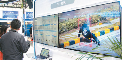 南京智博会上,科技企业展示安装“智慧大脑”的摄像头“AI+”应用于社区场景下的人脸识别、行为识别、物品识别等技术。 |