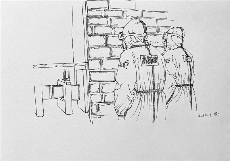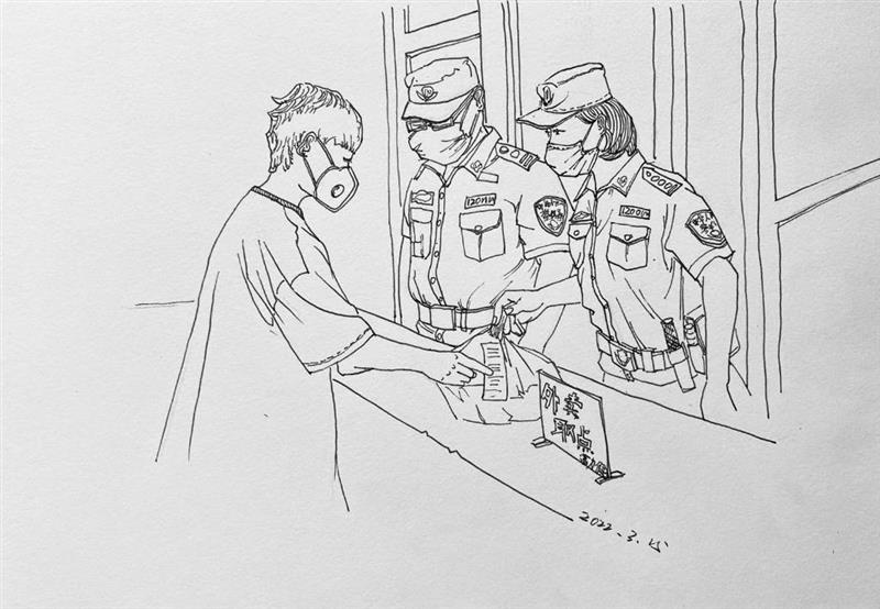 医护人员、民警、社区工作者和志愿者的照片描绘下来