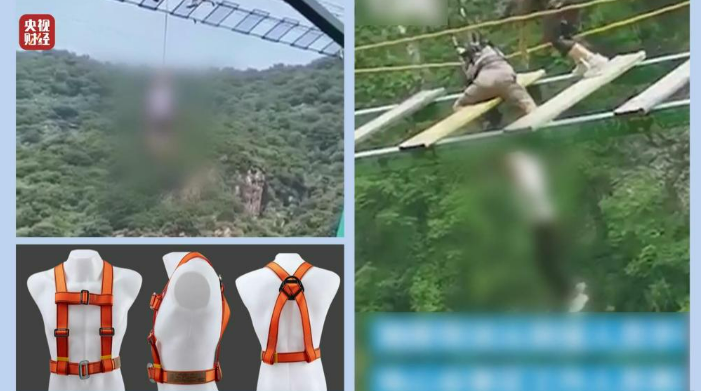 2022年7月22日,天津市蓟州区的九山顶景区,一名游客在“步步惊心”“网红”吊桥项目游玩时,突然昏迷,悬在半空。救援时,安全带突然脱落,游客摔下山谷,不幸身亡。
