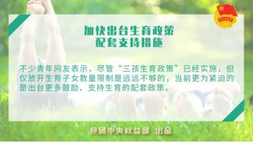 不少青年网友表示,尽管“三孩生育政策”已经实施,但仅放开生育子女数量限制是远远不够的,当前更为紧迫的是出台更多鼓励、支持生育的配套政策。