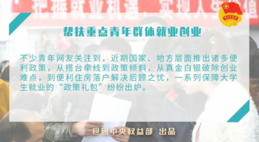 不少青年网友关注到,近期国家、地方层面推出诸多便利政策,从搭台牵线到政策倾斜,从真金白银破除创业难点,到便利住房落户解决后顾之忧,一系列保障大学生就业的“政策礼包”纷纷出炉。《“十四五”就业促进规划》中还首次明确提出了促进青年就业,并作出了单独的部署安排。此外,网友纷纷点赞团中央对低收入家庭毕业生的就业帮扶计划,但受逐年增多的毕业人数和疫情的持续影响,高校毕业生就业形势依旧严峻。