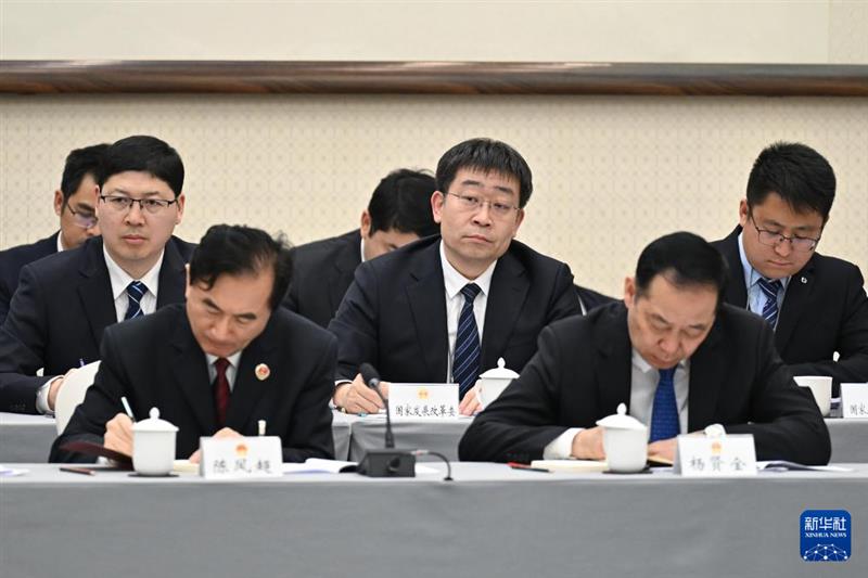 3月5日,国家发展改革委派员(中)在十四届全国人大二次会议天津代表团全体会议上现场旁听记录。新华社记者 李鑫 摄