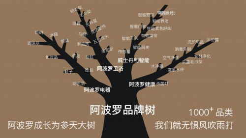 不仅如此,阿波罗还推行“双品牌驱动+三大品类产品合力”战略,形成"阿波罗卫浴+阿波罗健康+威士丹利智能"的多元化矩阵;陈董还向在座的经销商们介绍了阿波罗品牌之树,以阿波罗品牌为核心,以卫浴产品为重点,从单一品类向1000+品类经营发展。
