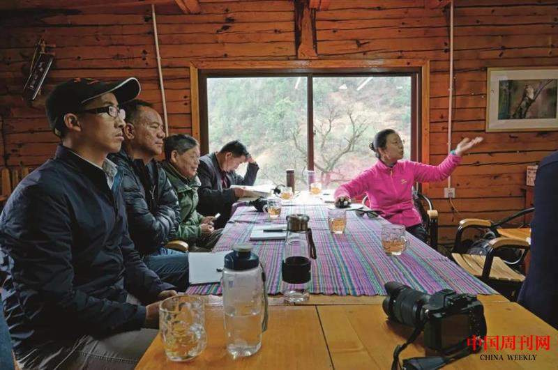 昆明中远环境保护科技咨询中心志愿者在做社区生计与对资源利用和保护措施的实地调查。这是国内首次将社区生计调查融入全境监测项目之中