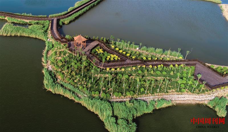 水系的周围,除了丰富的本地树种外,还有与湿地文化相融合的风车、草亭、木栈桥等景观设施。人们漫步木栈桥,坐船游湖,便可穿梭于芦苇荡中,十分惬意。“这种湿地入园的绿化方式,既突出了黄骅的乡土文化特色,又将节约型园林的理念融入其中,更是海绵城市建设的典型示范。”渤海新区黄骅市城管局负责人说,在黄骅市区,还有地坤湖公园、春熙公园、滨河公园、海骅园等,都是通过“引湿地入园”的模式建设的,在市区外围形成一道生态屏障,营造出别具一格的城市园林风貌。
