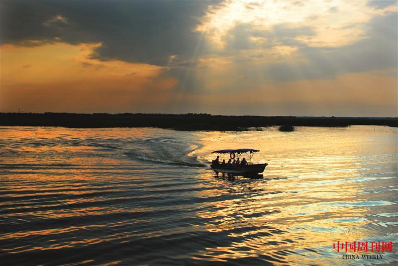 特别是秋日,郁郁葱葱的芦苇开始长出那美丽洁白的芦花,开满了湖面,随风摇曳。高达2~3米的芦苇丛已超过了船顶,完全遮住了游客的视线,好似一个个“绿巨人”在俯视着我们。别看它上半身那么挺拔、那么碧绿,它的根却深深地扎在淤泥里。它虽没有柳树婀娜的身姿,也没有枫树美丽的外表,但它惊人的生命力和顽强的意志令人敬佩。