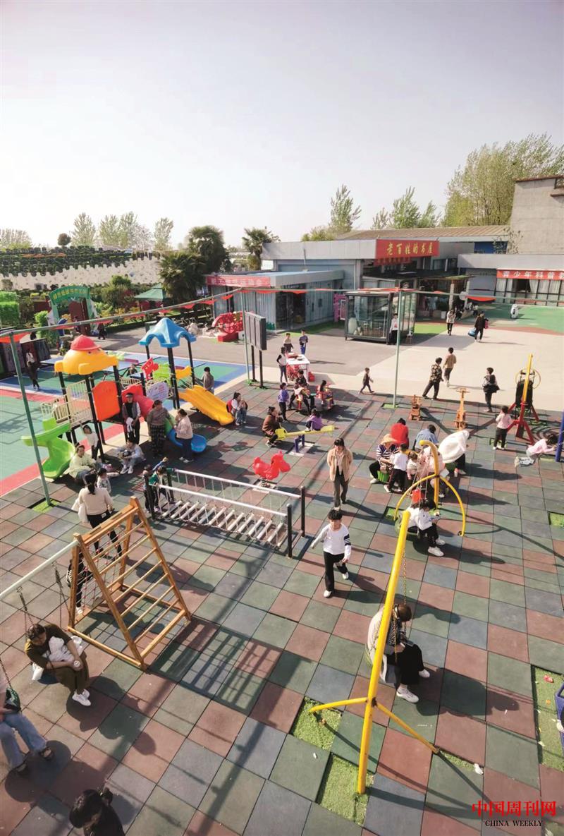 这里既是孩子们的游乐场、手工课堂又是附近居民夜生活的聚集地。一群广场舞爱好者载歌载舞,公司为他们提供了免费使用的音响乐器设备。之前的陵园门岗室被改造成小音乐厅,里面音乐响起,外面舞步清扬。偶有丧葬祭祀礼仪之需,这些乐器还会成为必要的哀乐之礼。阅读空间、儿童乐园、广场舞开放到深夜。在这座开放式园区,界首市纪念文化传媒公司还增加了社区直饮水站、便民售货机等设施,为群众生活提供方便。