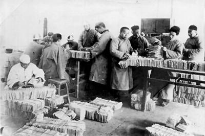 1930年,单士元(右二)和大家一起整理清代档案。资料图片