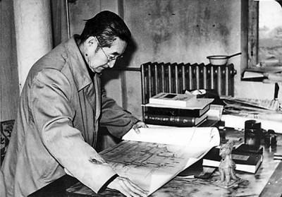 20世纪80年代,单士元在审查故宫工程图纸。资料图片
