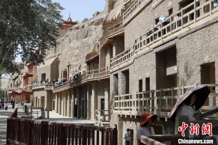 2021年6月,游客在敦煌莫高窟参观,欣赏石窟艺术,感知敦煌文化。(资料图) 周斌全 摄