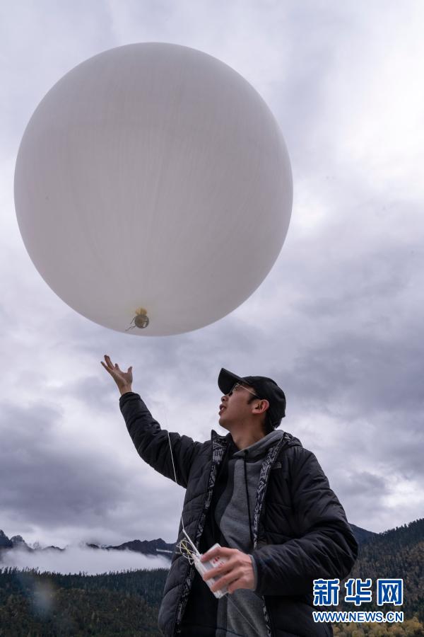 2019年10月21日,随着探空气球成功施放并进入万米高空收集大气垂直数据,第二次青藏科考“地气相互作用及其气候效应”观测试验第三阶段在西藏林芝启动。新华社记者 孙非 摄