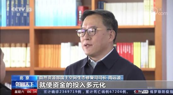 自然资源部国土空间生态修复司司长 周远波:改变了原来单一的财政投入的渠道,吸引社会资本来投入生态修复,使我们资金投资的渠道进一步拓展,使我们修复的力量进一步增加,就使资金的投入多元化。