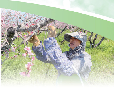 江苏无锡市鑫旺水蜜桃专业合作社的社员正在为桃树系上生物防虫工具迷向丝。 |