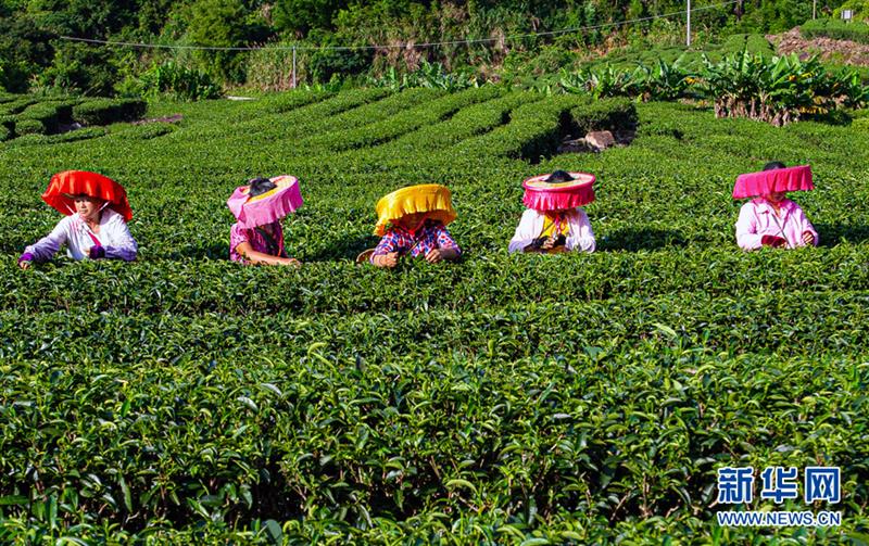 近日,在广东惠东县白盆珠镇横坑村,迎来春茶采摘高峰。新华网发