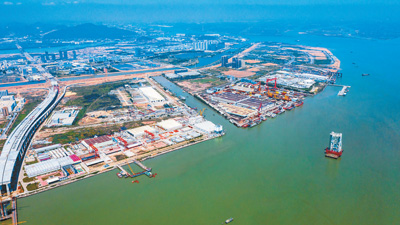 内伶仃洋海阔天舒。从深中通道中山市马鞍岛登陆点眺望,一排排巨大的桥墩延伸向水天一色处。长约24公里的深圳至中山跨江通道,是继港珠澳大桥之后又一个连通珠江口东西两岸的重大工程,建成后,从深圳宝安国际机场到中山翠亨新区的车程,将从目前的两个小时缩短至20分钟左右,成为连接“深莞惠”与“珠中江”两大经济圈的公路直连通道。