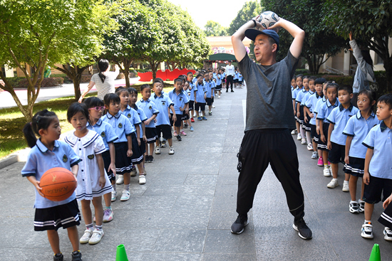 9月1日,杭州市小学迎来开学日。丁兰实验学校一名体育老师在为学生们上课。 视觉中国供图