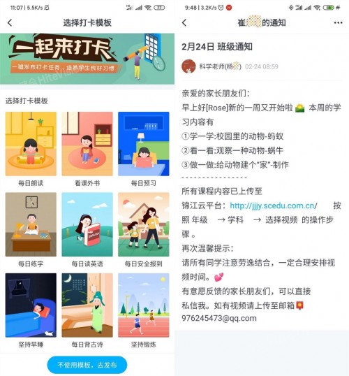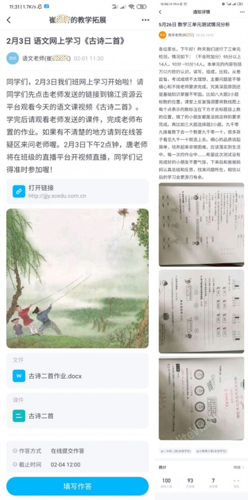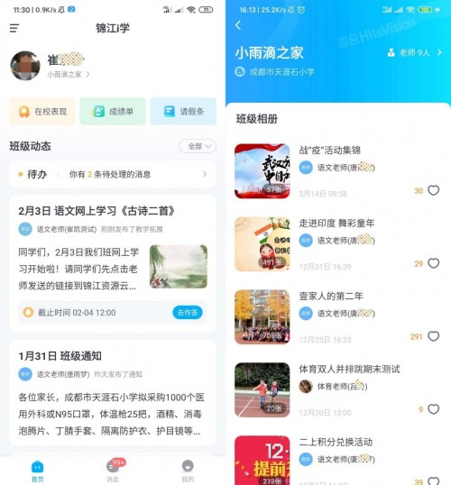 学生和家长通过锦江i学随时查看班级动态、班级相册