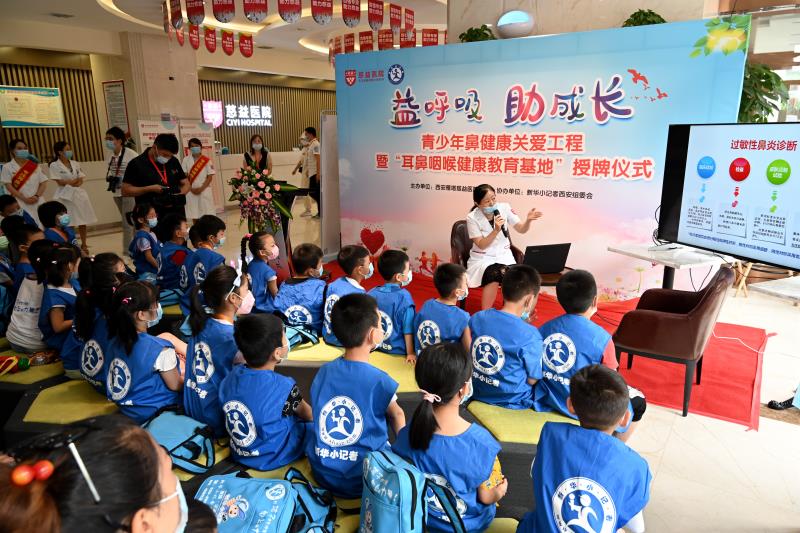 7月4日上午,西安雁塔慈益医院、新华小记者西安组委会共同发起的“青少年鼻健康关爱工程暨耳鼻咽喉健康教育基地”授牌仪式在西安慈益医院隆重举行,来自两家机构的主要负责人及27名新华小记者代表出席了本次授牌仪式。