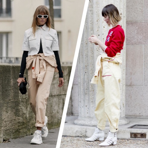 但是今天秋鹅要跟大家说的可不是这种一本正经的穿法,而是这种把连体裤的上一部分脱下来系在腰上的时髦精专属遮肚穿法~