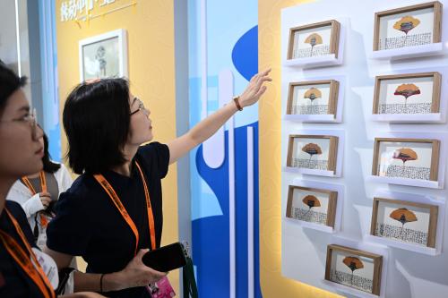 在银杏叶上作画,将钟鼓楼、永定门等北京中轴线上的地标建筑一一呈现。“最美中轴线”系列展陈亮相文旅服务专题展区。展区一隅,京派叶画非遗传承人师亮带来了《叶上中轴美》系列作品。他介绍,这套作品以北京中轴线上的9处代表性古建筑为灵感创作而成,在银杏叶上呈现古韵时光之美。