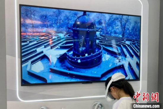 9月3日,观众在2023年服贸会首钢园展区体验《圆明四时景》互动项目。中新社记者 徐婧 摄