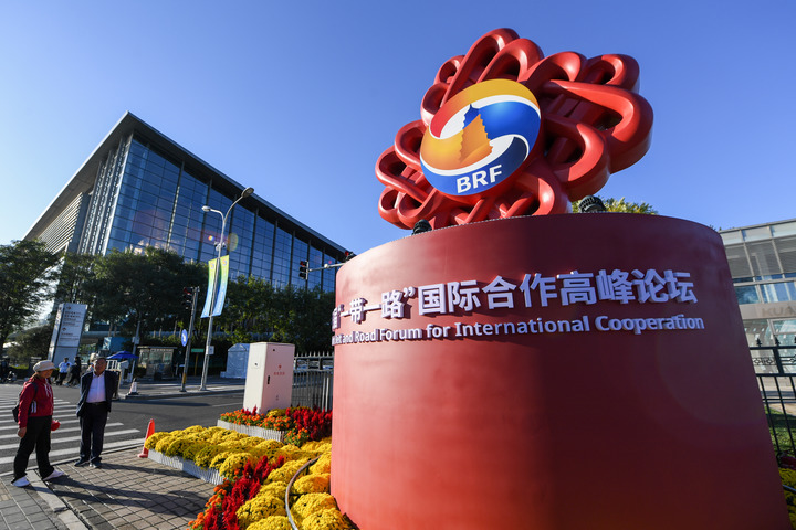 10月14日在北京国家会议中心附近拍摄的第三届“一带一路”国际合作高峰论坛景观布置。新华社记者 鞠焕宗 摄