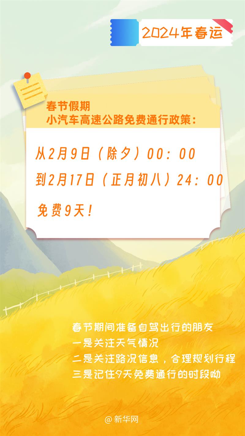 是从2月9日(除夕)00:00到2月17日(正月初八)24:00,免费9天!