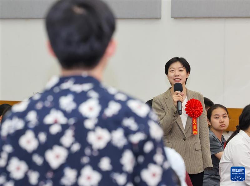 5月18日,山西大学政治与公共管理学院团委书记高思恩在现场与听众交流。新华社记者 殷刚 摄