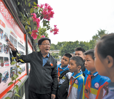 退休教师陈国平在贵州省榕江县古州镇中心学校支教。王炳真摄(影像中国)