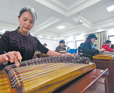 江西省宜春市万载县老年大学内,学员们正在学习古筝。邓龙华摄(人民视觉)