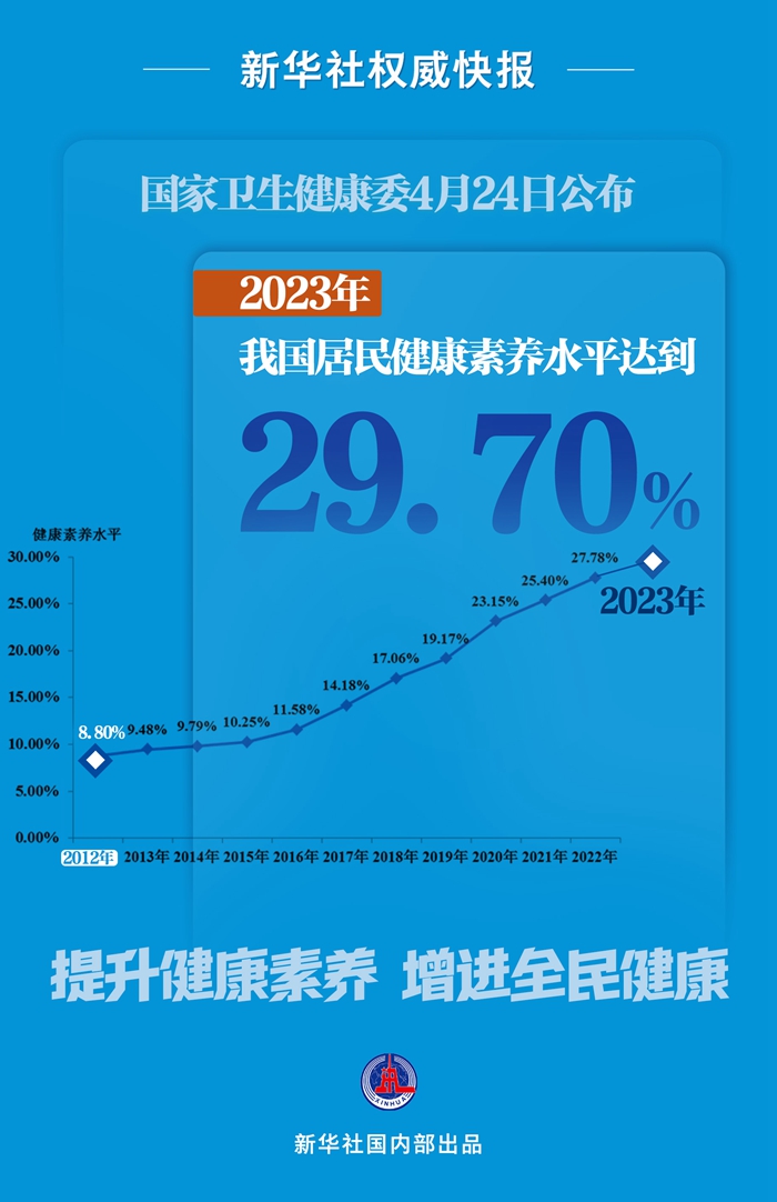 健康素养是健康的重要决定因素。记者4月24日从国家卫生健康委了解到,2023年我国居民健康素养水平达到29.70%,继续呈现稳步提升态势。