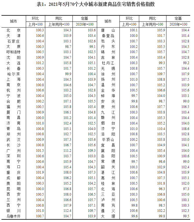 中国经济网北京6月17日讯 国家统计局今日发布5月份商品住宅销售价格变动情况统计数据,国家统计局城市司首席统计师绳国庆解读称,2021年5月份,统计监测的70个大中城市商品住宅销售价格涨幅基本保持稳定态势。