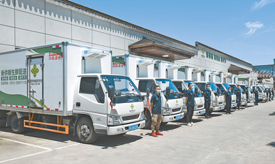 江苏张家港市供销合作社所属新供销生鲜配送公司的配送车队整装待发。 |