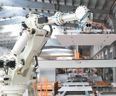 位于上海的宝山钢铁基地C008热镀锌智能车间被称为“黑灯工厂”,凭借人工智能研判、工业机器人、远程集中控制等多项技术,工厂内无需人工操作,可以实现24小时不开灯作业。车间内,从调运钢卷上料,到巡视高炉,再到在锌锅区域捞渣作业,已全部由机器人完成,颠覆了人们对钢铁生产的旧印象。