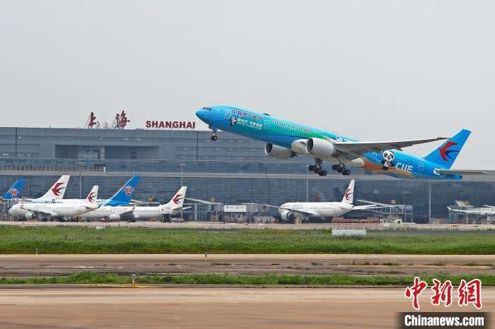 东航首架进博号主题飞机从虹桥机场起飞。 殷立勤 摄
