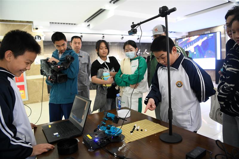 除此之外,活动还设置了人工智能体验区。学生们通过语音控制小车、操作无人机飞行,以及与AI机械臂对弈五子棋等互动体验,深刻感受到了人工智能技术的神奇与魅力。