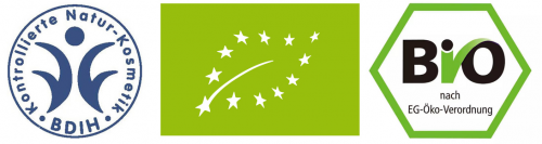 (从左至右:德国BDIH认证,欧盟有机认证,德国有机认证)