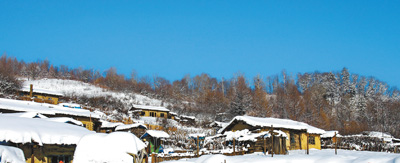 图片为木屋村雪景。