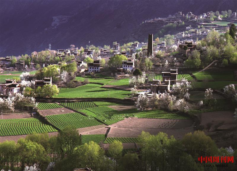 金川的沙耳乡,是一个秀美的藏寨,寨子道路两旁,盛开的梨花自然搭成一个天然的屏障,将行人和过往的车辆掩映在铺满梨花奇景的世外桃源中。路上随处可见身上带着浓郁的咂酒香味的嘉绒汉子,穿着节日的盛装,佩带着最华贵的饰品,携手漂亮的藏族姑娘,用天籁般的歌喉抒发情感。他们跳着具有本民族独特风格的马奈锅庄,漫步在风情各异的林间小道,成为一道独特的、亮丽的风景。