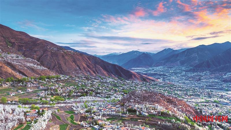 金川县隶属四川省阿坝藏族羌族自治州。地处青藏高原东部边缘,有着“阿坝小江南”“中国雪梨之乡”的美誉,每年梨花盛开时节,道路两侧到处都是梨花,花瓣飘飘洒洒,风卷起花瓣在空中飞舞,阳光下忽闪忽闪。三月梨乡,草长莺飞,沐浴着春日的金辉,梨乡大地万亩梨花绽放,绵延百余公里的大金川两岸粉妆玉砌,展现出大金川这雪域江南的壮阔与秀美。梨花乱舞、雪浪翻飞,一江银龙,二百里大金川裹九天白云、银装一身,这是最为难得的奇特景观。