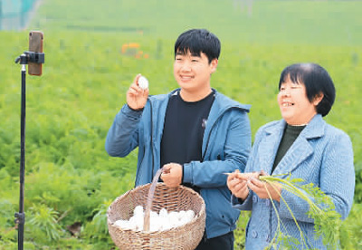 在甘肃省陇南市成县陈院镇白马寺村,网红主播正在直播带货拓展农产品线上销售。 |